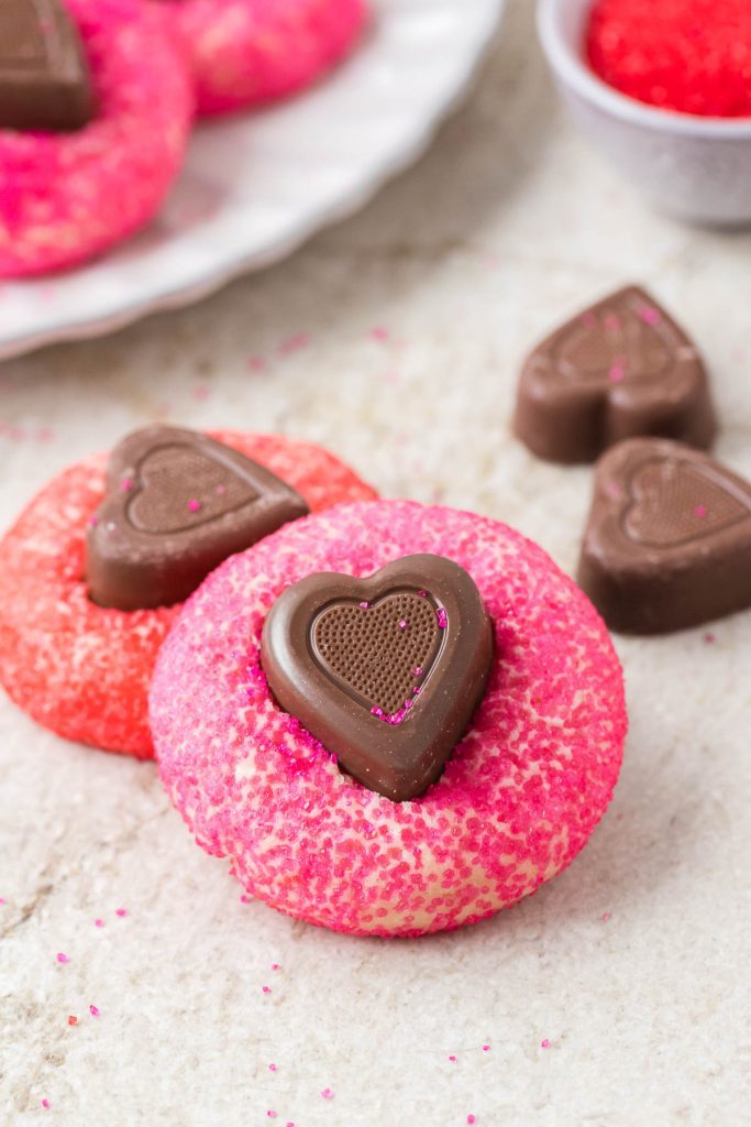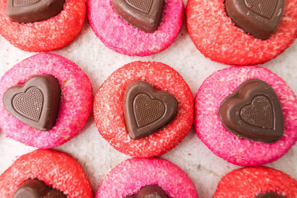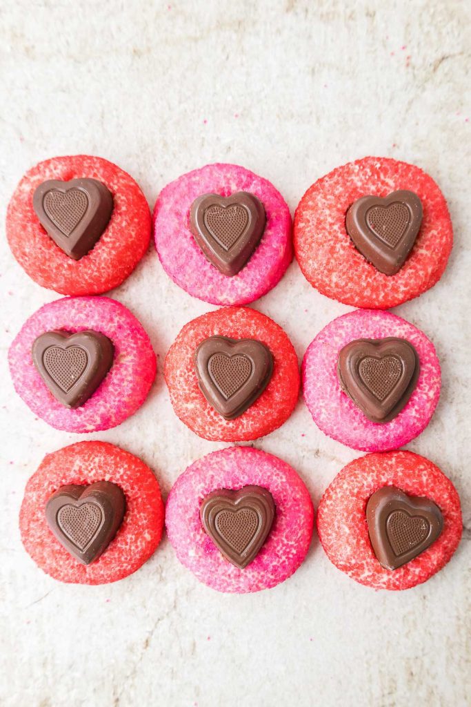 chocolate heart into the center of each cookie. - Transfer cookies to the refrigerator for 10–15 minutes so the chocolate sets.