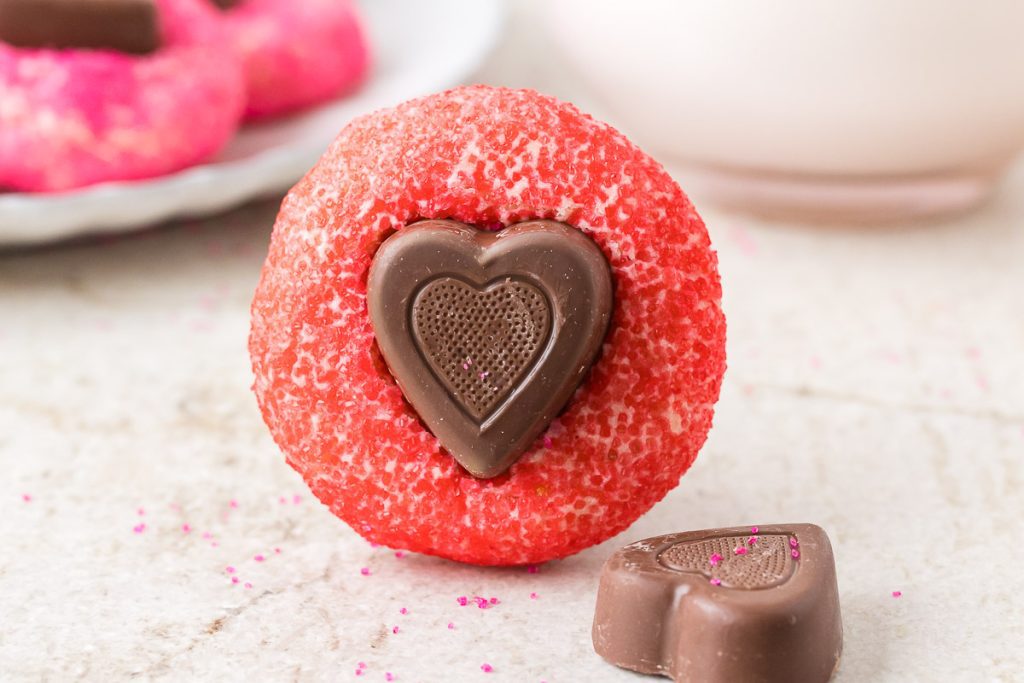 Chocolate heart cookies, inspired by Sally’s Baking Addiction, are soft, buttery cookies coated in sparkling sugar. Each cookie is finished with a rich chocolate heart in the center, adding the perfect sweet touch.