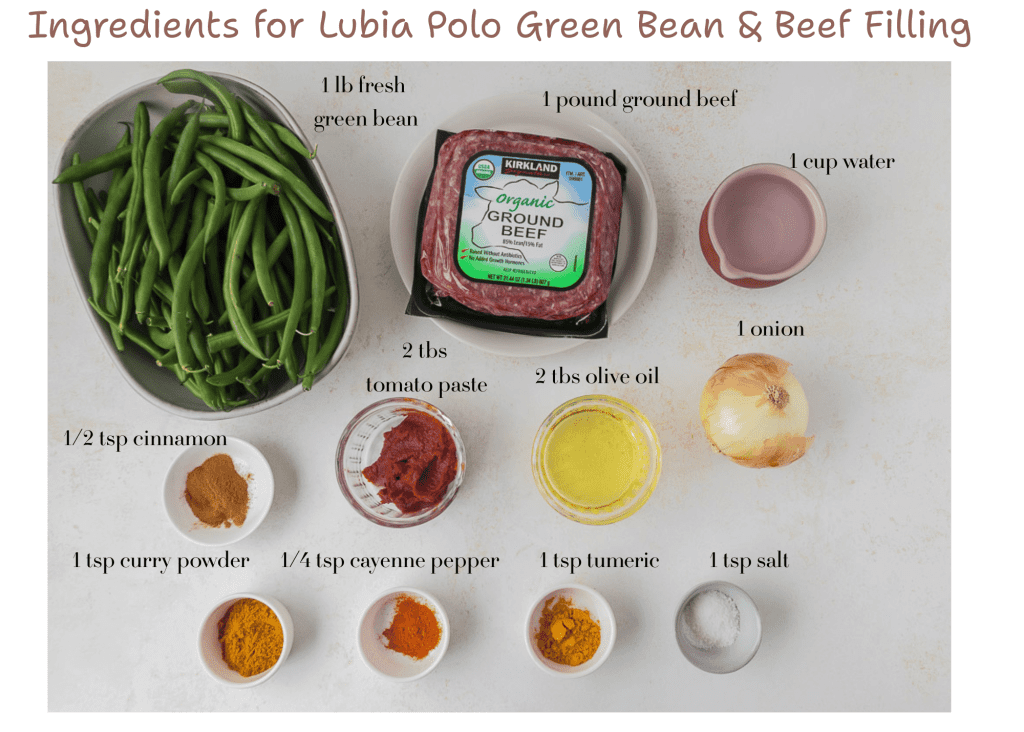 Lubia Polo is a traditional Iranian (Persian) rice dish made with green beans, ground beef, tomato paste, and aromatic spices, layered with fluffy basmati rice and often served with crispy tahdig.